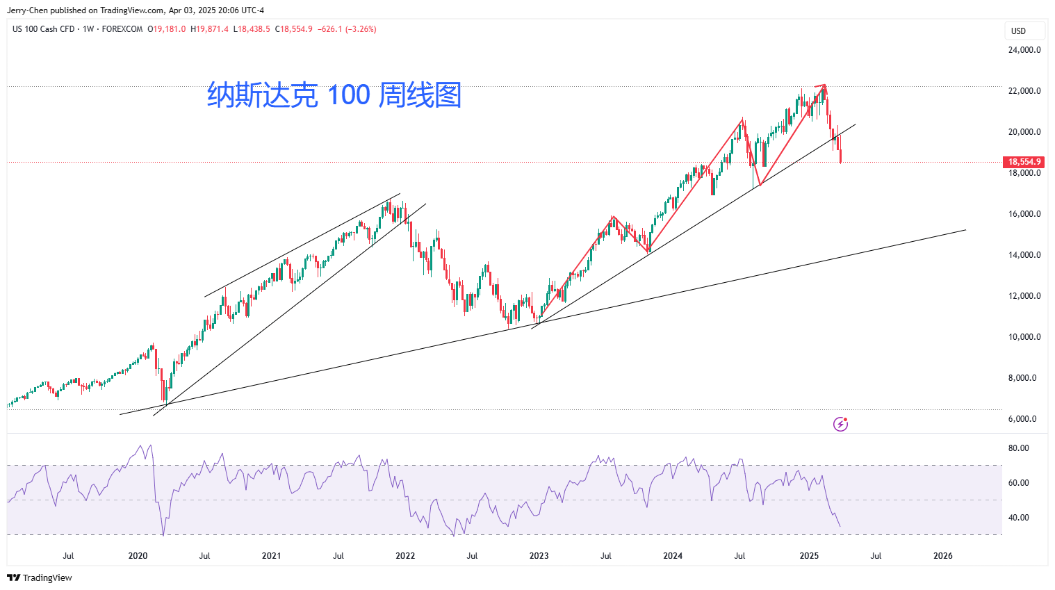 在特朗普宣布了“对等”关税政策后,市场恐慌情绪进一步攀升,VIX指数升至30%刷新2024年8月以来的新高。周四纳斯达克-6%、标普500-4.8%、道琼斯-4%,能源板块跌幅居首。大型科技股中,苹果、亚马逊和Meta重挫9%、英伟达-7%、特斯拉-5.5%。