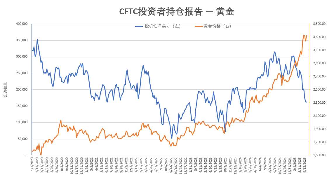 黄金期货投机性多头头寸 vs 金价 来源:CFTC, Forex.com