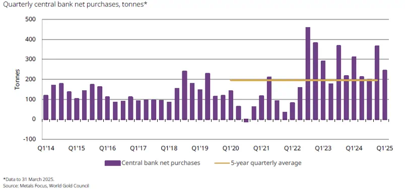 全球央行的黄金净买入量 2014-2025 来源:世界黄金协会