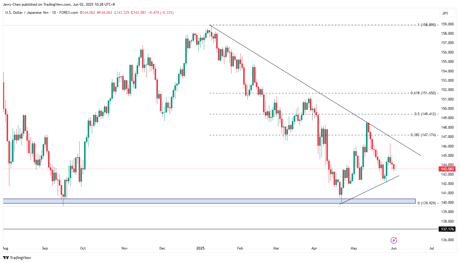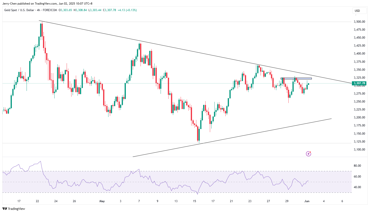黄金延续高位震荡,5月几乎收平于3289美元。WTI原油5月触底反弹4%,周末OPEC+连续第三个月增产的决定有望帮助油价挑战64-65美元的关键阻力区域,若能顺利突破可看高至70美元。