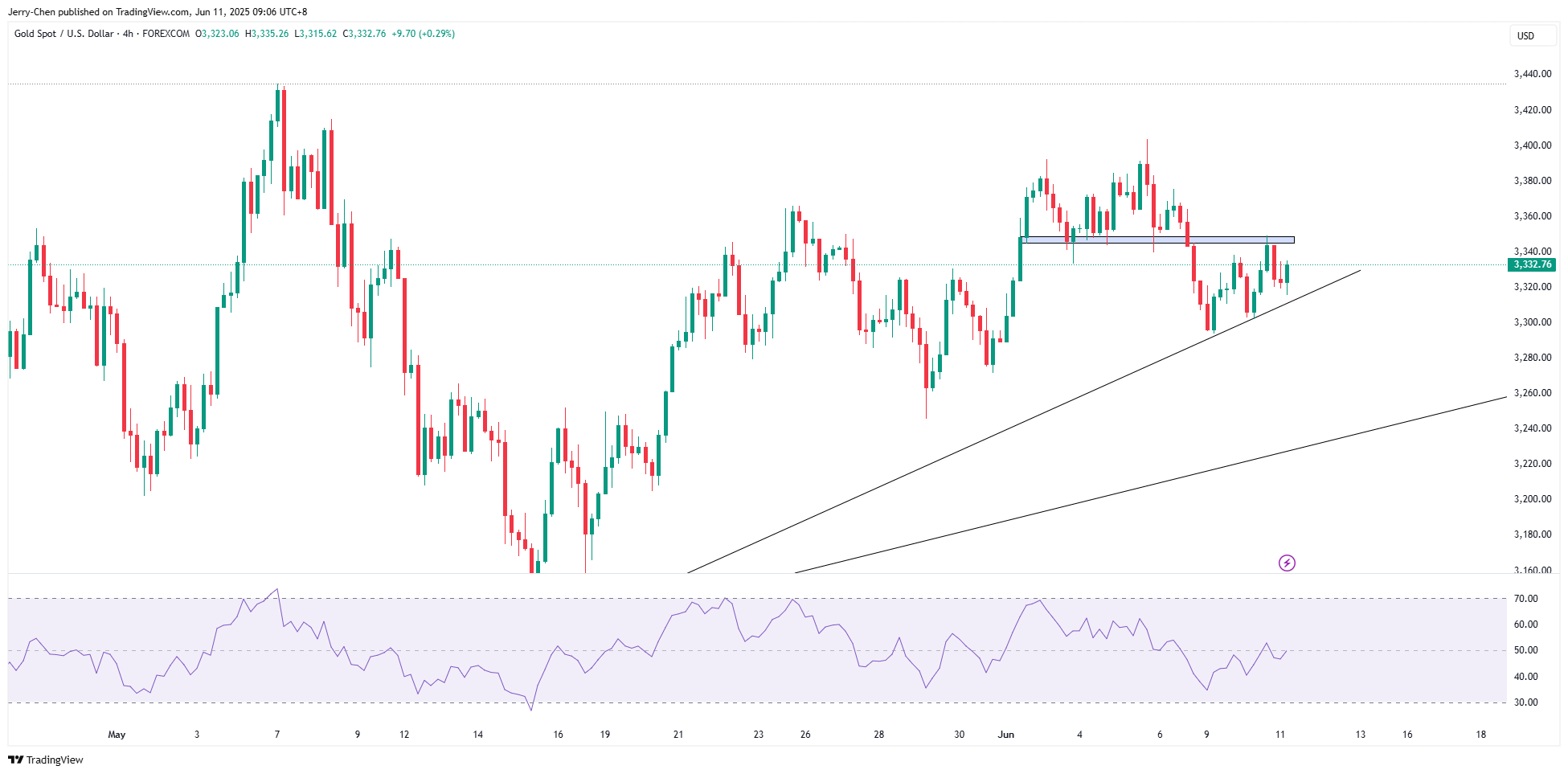 周三的关注焦点是美国5月CPI数据(20:30),预计从2.3%升至2.5%,核心CPI预计从2.8%升至2.9%。受到4月生效的多项关税政策的影响,此次通胀数据可能升至3个月以来最高水平。高于预期的数值或令美联储进一步推迟降息,从而延缓美股冲高的步伐,并令黄金继续震荡行情。不过相比于反应过去的数据,投资者显然会更关注正在进行的中美磋商对未来通胀环境和利率政策所产生的影响。